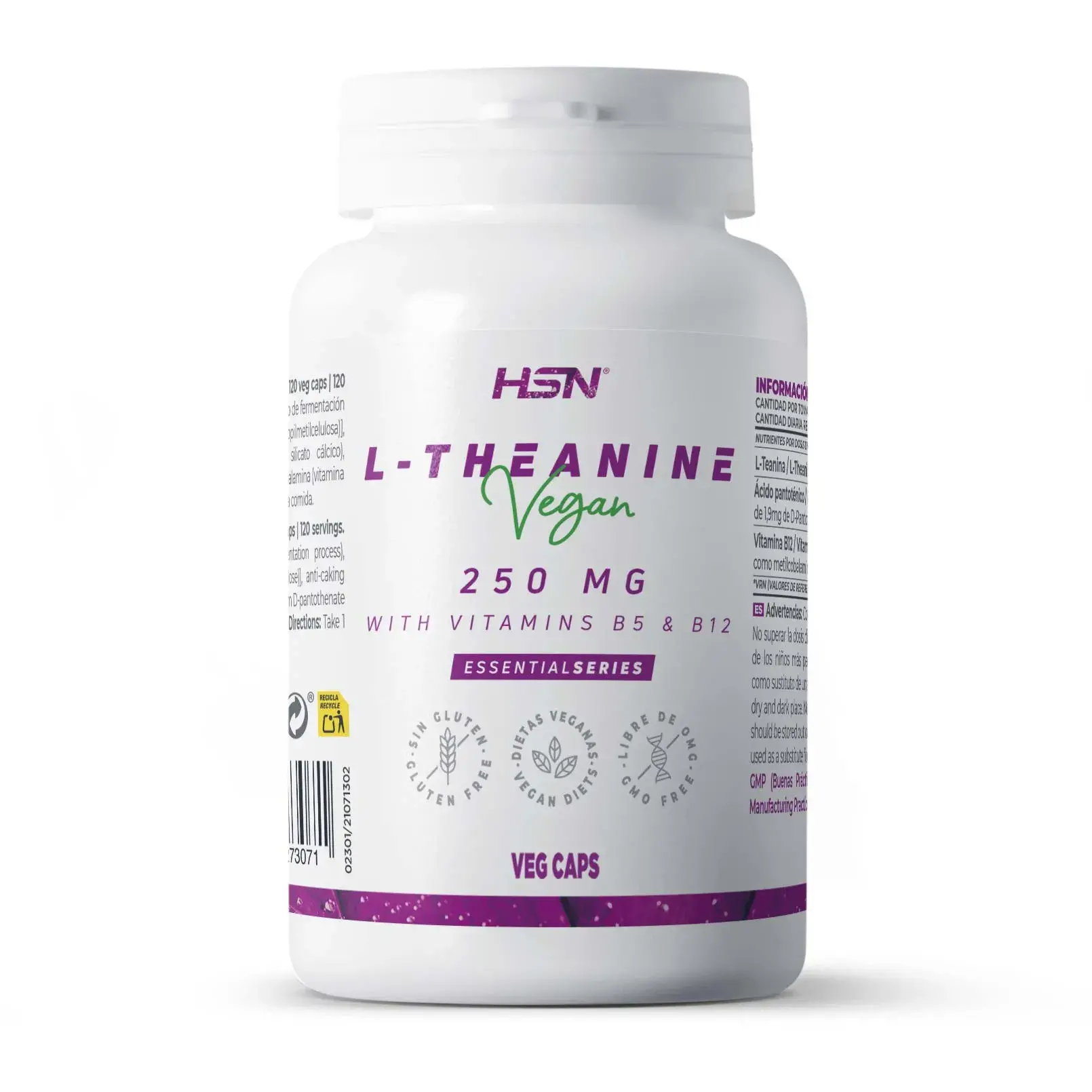 L-teanina (produzida por um processo de fermentação vegetal). cápsula vegetal [agente de revestimento (hidroxipropilmetilcelulose)]. antiaglomerantes (sais de magnésio de ácidos gordos. silicato de cálcio). D-pantotenato de cálcio (ácido pantoténico). maltodextrina. metilcobalamina (vitamina B12).