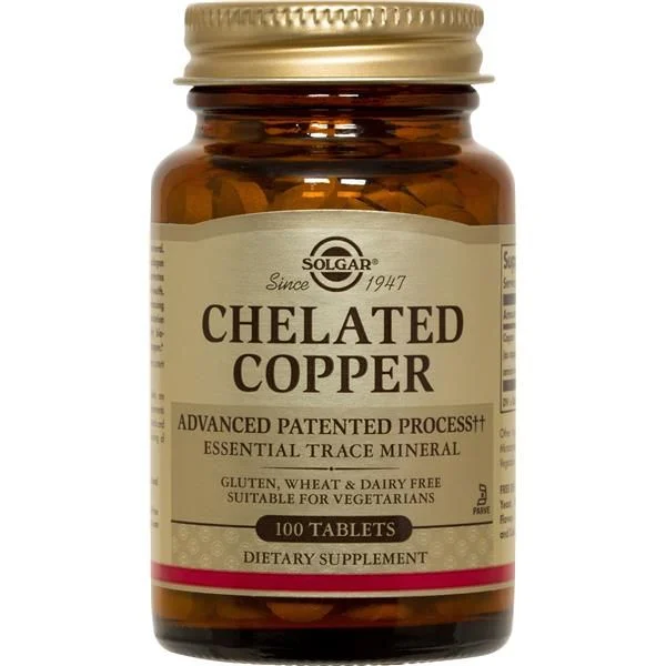 Solgar® Cobre Quelatado é um suplemento alimentar que fornece cobre. um mineral essencial. *O cobre contribui para a manutenção dos tecidos conjuntivos normais e para o transporte normal do ferro no organismo. *O cobre contribui para um normal metabolismo produtor de energia. funcionamento do sistema nervoso e sistema imunitário O cobre contribui para a normal pigmentação do cabelo. da pele e para a proteção das células contra as oxidações indesejáveis. 1 comprimido tomado de acordo com o modo de tomar descrito contribui com a dose diária significativa de crómio para se obter o efeito benéfico descrito. É importante seguir um regime alimentar variado. equilibrado e um estilo de vida saudável.